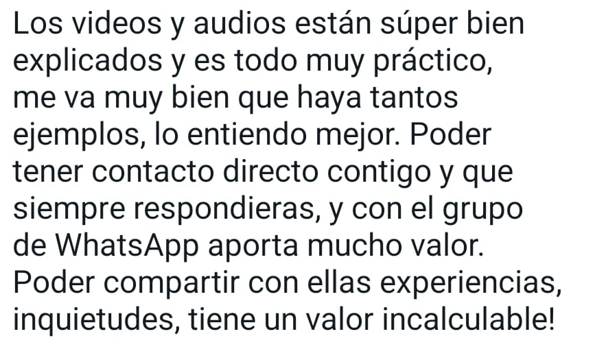 Y si quieres más, tendrás acceso a un grupo de alumnas para compartir entre vosotras.
